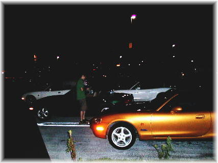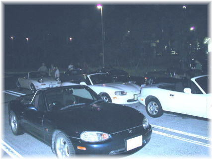 2004/08/21 長島SAミーティング 本日免許証が帰ってきました。免停のおかげでこの2カ月運転出来ずホーントつらい日々でした。自業自得とはいえ長かったなぁ・・・。 オフ会は7時頃から集合していた様ですが仕事が終わってから行ったので9時過ぎに到着。写真は東海市から湾岸線に乗るとこです。数日前に雨が降ったので車が汚い汚い。洗車する時間もなかったので非常に気になります。 夜の撮影のため全体的に暗い写真になりました。言い訳ですが電池が切れそうで夜間撮影モードで撮影できなかった・・・。 ![]() オフ会場到着。ロードスターがメッチャ居るー!。着いたのが最後から2番めでした。久しぶりにオープンで突っ走る湾岸線は気持ちよすぎ!マジで!夏の夜のドライブはオープンカーで良かったなぁと思える瞬間でした。 走行中長島スパーランドの花火がちょっとだけ見えたんだけど着いたら終了してました。残念!できれば写真に撮りたかったな。 到着して幹事さんに挨拶したあとロードスターを眺め回します。NBが半数を占めていました。もうすぐNCが出てくるとか言われてるし当たり前といえば当たり前かな。 ![]() 一番驚いたのは到着するなり車の内装を懐中電灯で照らされまじまじと見られた事です(汗)。車の中に怪しいもの置いて置けませんねっ!。ナイトオフならではの光景でした。オフ慣れしているのか皆さんの用意周到さにも驚きでした。 ![]() どーも夜の写真は難しい。皆で足湯を見に行きましたが既に営業終わっていました。しかも飲食コーナーも営業終了しているし。これまたザンネン! ![]() 下の写真は団子状態で並べていた車を一列に並べなおした後。オフ会に手慣れてらっしゃる関西の方たちが手伝って下さいました。フロントサイドリフレクターが反射しています。ピカー! ![]() 尻からのショット。これまたリフレクター反射の絵。 ![]() 写ってないけど周りでもいろんな車が集まっていてそりゃ凄いことになってました。改造車大集合って感じでした。ネオン管つけてるクルマが多かったなぁ。ワイルドスピードの影響ですかね。爆音系VIPカーとかも多かったなー。 ![]() 上と下は幌を締める前と後の比較写真。先日室内コンソールをいじっていたら自作のPWハーネスが断線してしまった。で、右の窓が開きません。トホホ。有料道路乗るときはオープンにしてれば問題ないけど。今度の休みに直さなきゃ。 ![]() 下の写真のロードスターの向こうのほうで激しい改造車が集結していました、セルシオとかHUMMER2とか来ていたし・・。 ![]() ロードスターの向かい側ではトヨタ・セラがミーティングをしておりました。7台ぐらい居たかな。こんな希少な車が集まるの愛知県ならでは!?。トヨタがガルウイングの車を作っていたなんて今となっては考えられないね。バブル時代の異端児か〜。。 ![]() 皆でセラを見学しております。関西チームがセラユーザーに話しかけていたようです。盛り上がっていたみたい? ![]() 解散直前。パーキングエリアに車が一番たくさん居たような気がします。朝までたむろって居るんですかね・・・。喧嘩とかトラブルが無くてよかったよ。 ![]() 天気もよかったし楽しいミーティングでした。皆さん無事帰宅できたようで良かった。関西の方は遠くからご苦労様でした! |